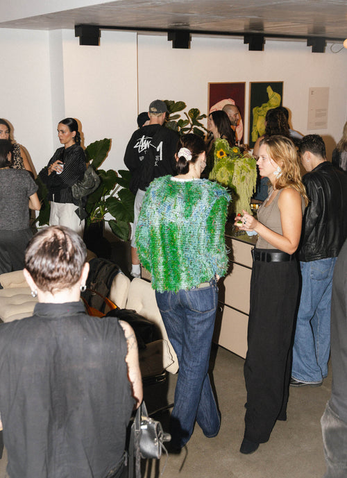 För lanseringen av vår höstkollektion 2025 samlade vi vänner, konstnärer och samarbetspartners i Berlin för att fira. Miljön var Klub Maison – en onlinetidskrift som får en själ och närvaro i fysiska verkligheten genom sin lokal. Det minimalistiska utrymmet definieras av råa betongytor och stora fönster från golv till tak, med en energi som förändras med varje event den är värd för.